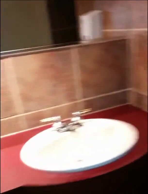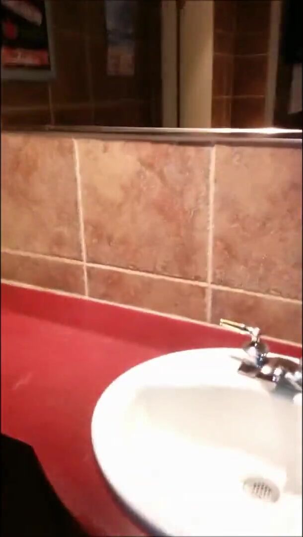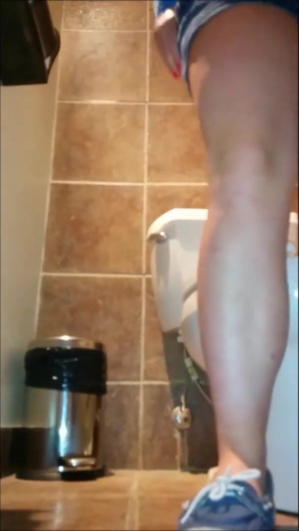 Woman shitting public toilet at restaurant.