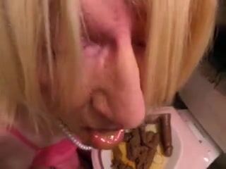 Granny eating shit