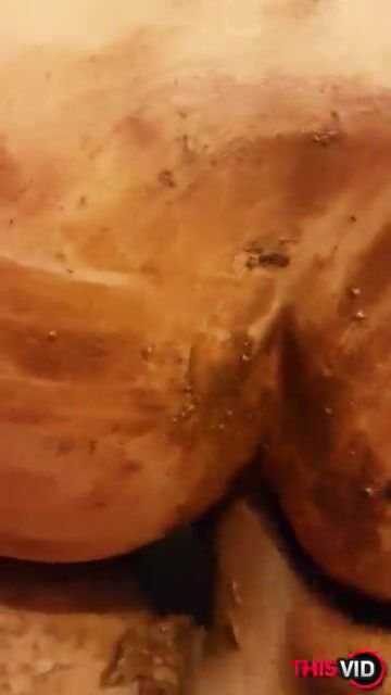 Big butt mom shitting trough her blue panty