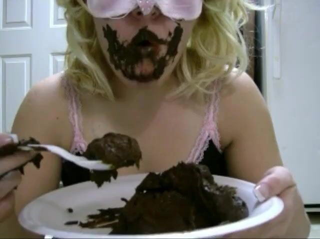 Blonde Masked Woman Eating Her Poop in a Plate
