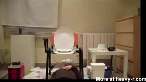 Short: Girl shiting on a blue plate