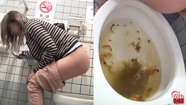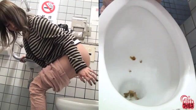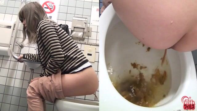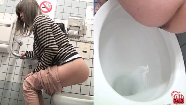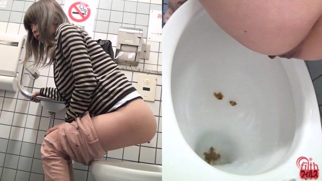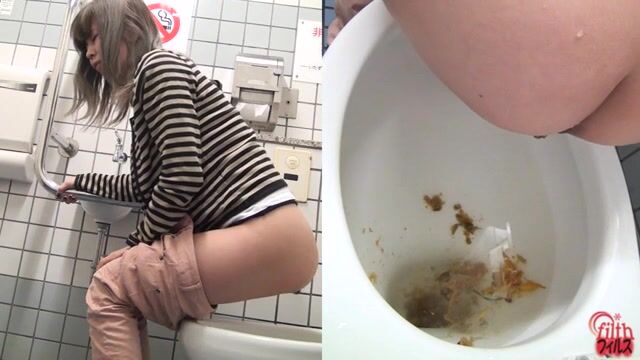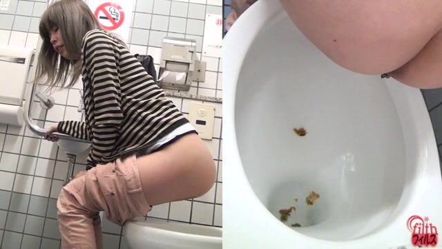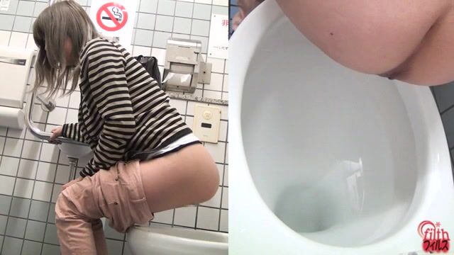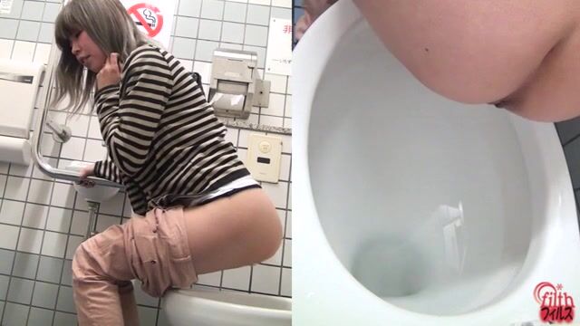 Sexy tiny girl craps and pees