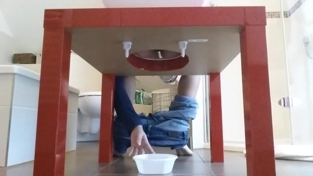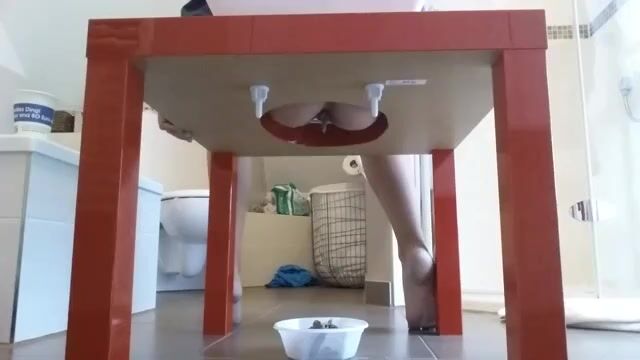 Hot thin babe shits on her floor