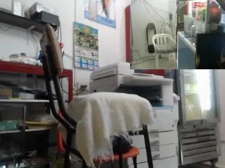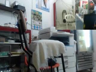 Really cute girl drills her dirty ass in a shop
