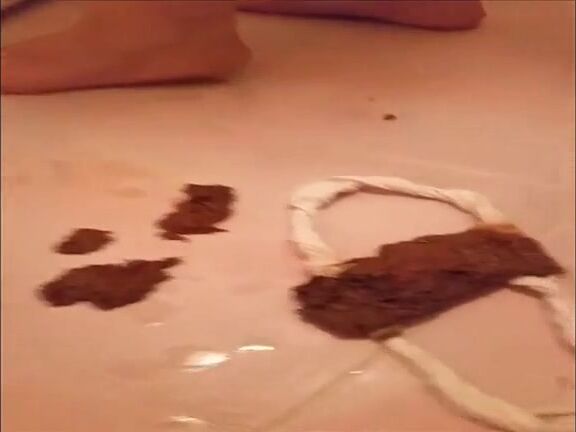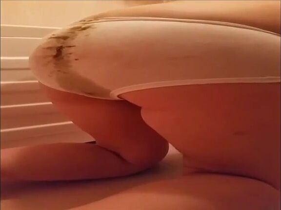 Chubby girl pooping and farting in her white panties