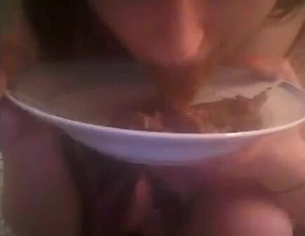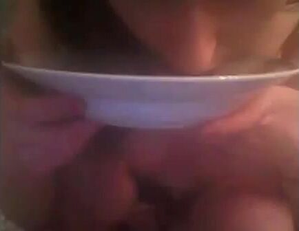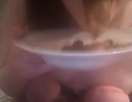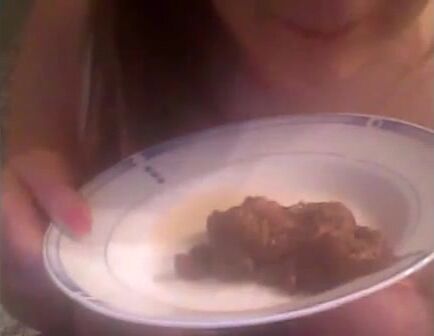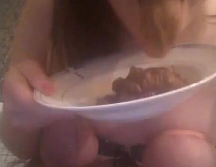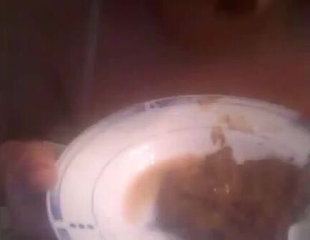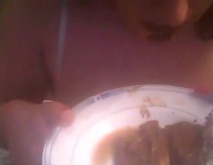 She shits on the plate and eating it
