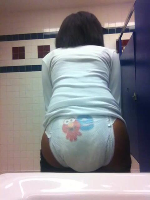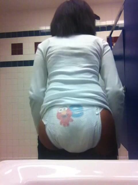Black girl pooping in diapers in public bathroom