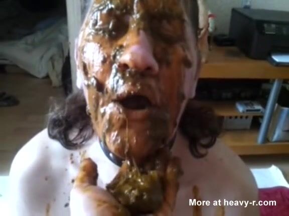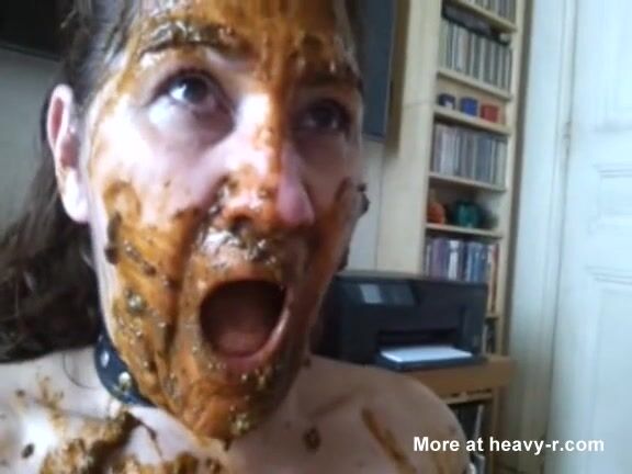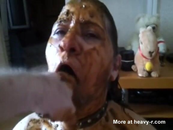 Lucky slave eating his mistress shit as breakfast