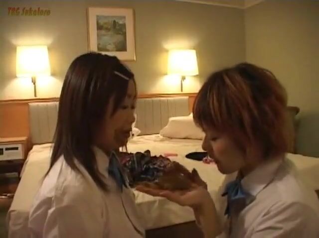 Lesbian scat play in the cheap Japanese hotel