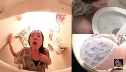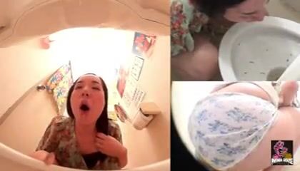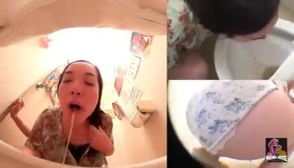 Sick women shitted panties and vomited in the public toilet