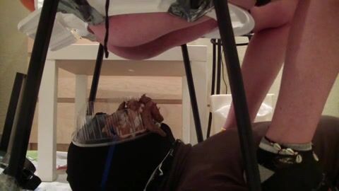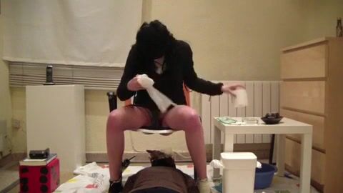 Multiple girls shit on slave