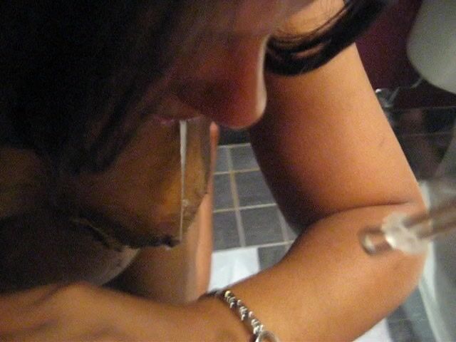 Latina hooker puking while sucking shitty cock