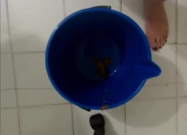 Sexy feet woman shitting hard in the toilet