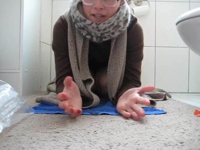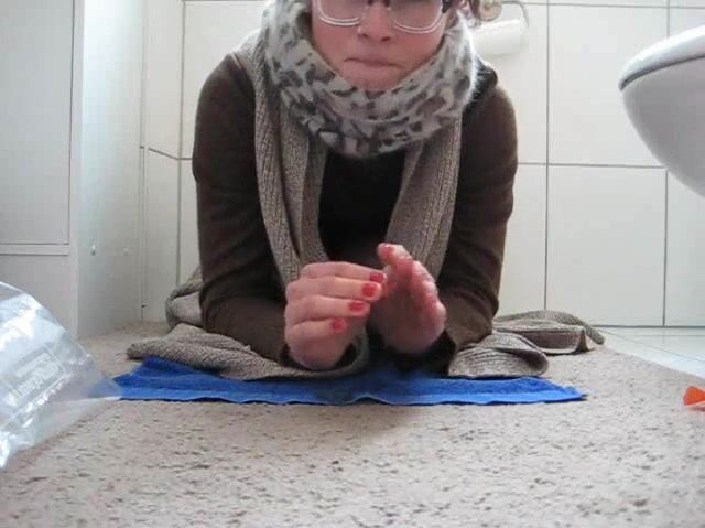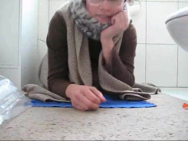 girl shits in a bag in her bathroom