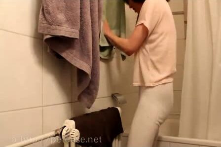 wetting and pooping big log in tight pants