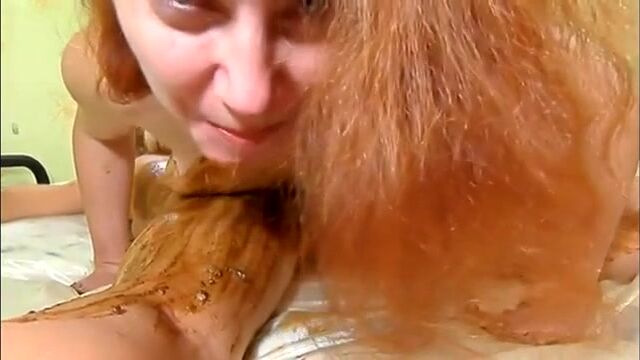 lesbian playing with shit