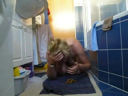 Hot blonde swallows her shit