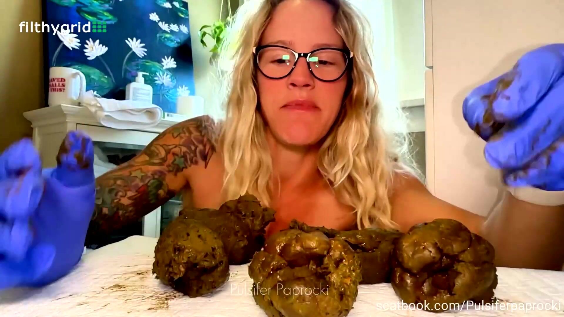 Tatted Woman Takes Creamy Shit on Slave