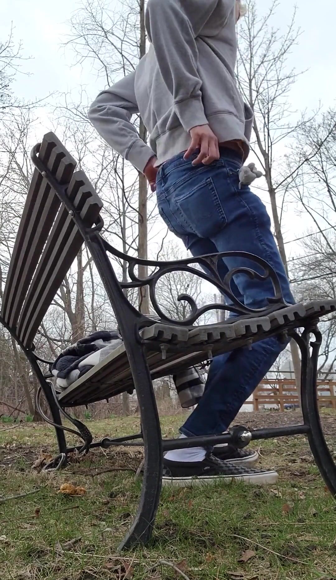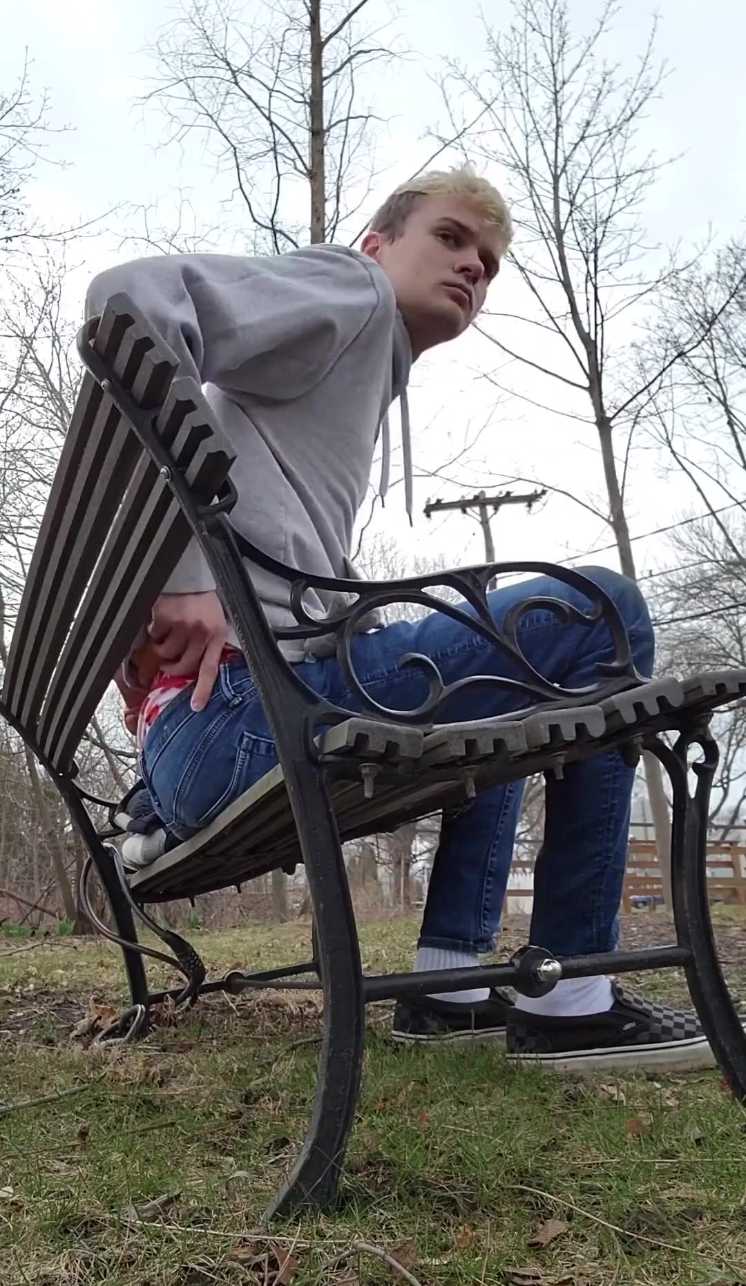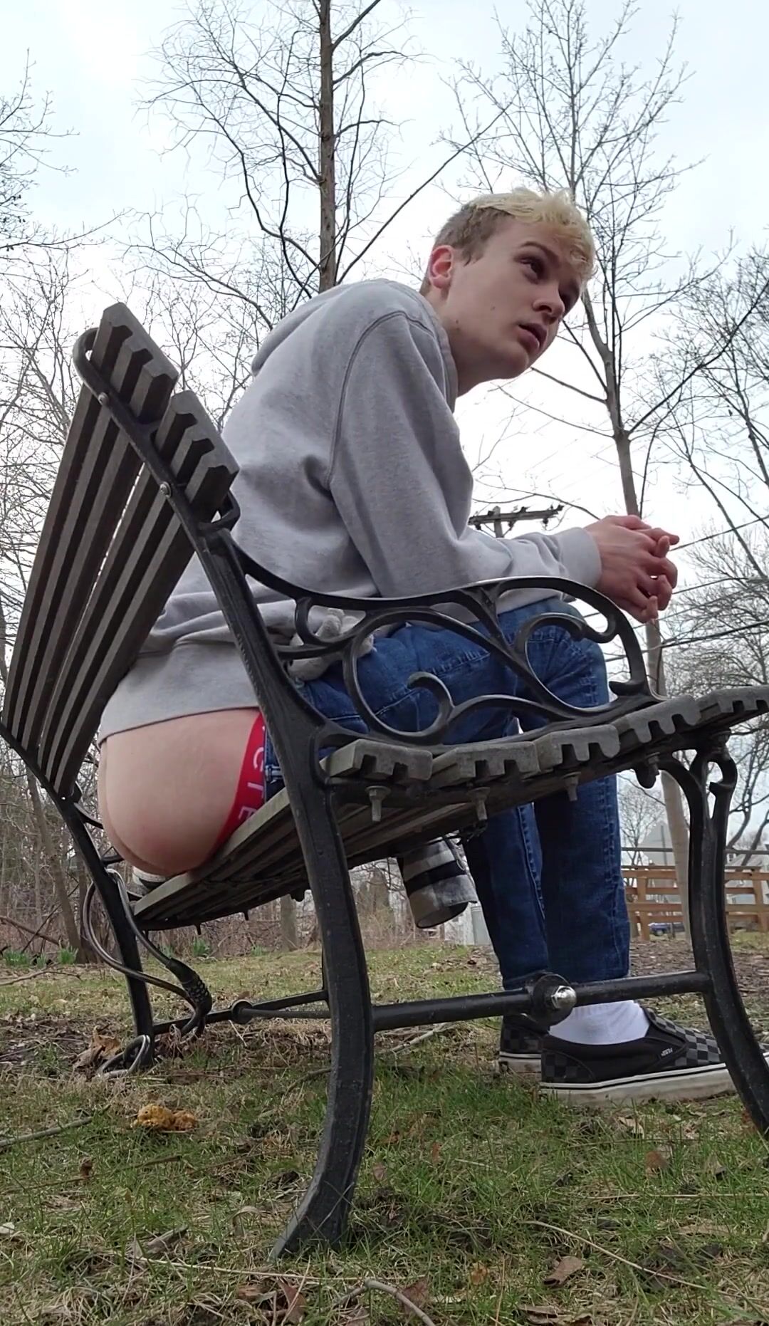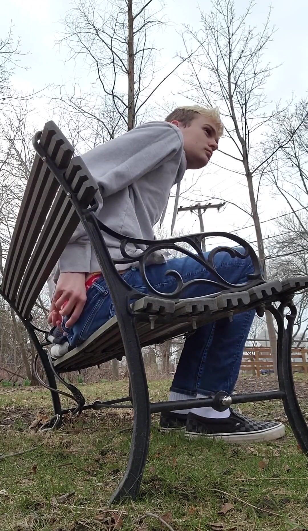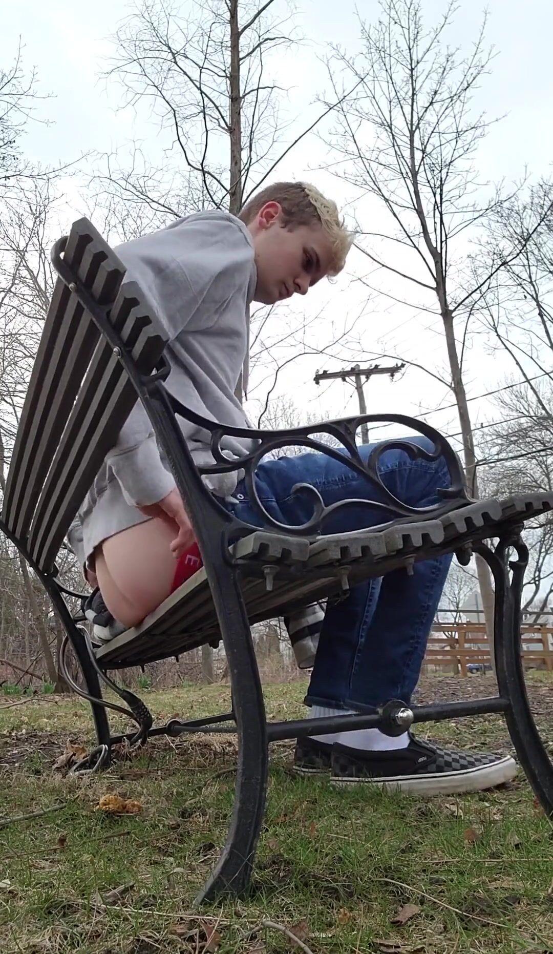 Twink Shitting on a Public Bench by the Road